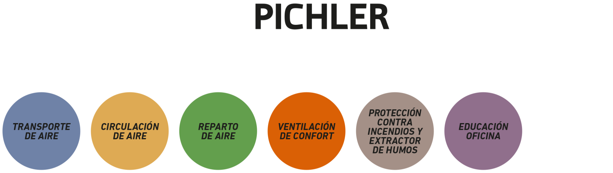 Programa completo de Pichler: Nuestra amplia gama de productos nos permite cubrir de forma profesional todas las áreas importantes de la tecnología de ventilación. Hemos dividido el programa completo de Pichler en seis líneas de productos, más el servicio de confort de Pichler: